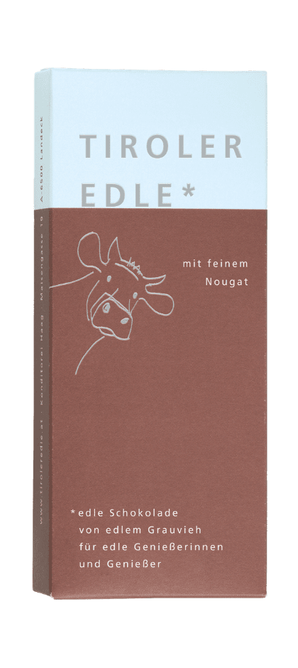 The classic – nutty, but without the chunks. With fine hazelnut nougat and fresh cream from Tyrolean gray cattle.